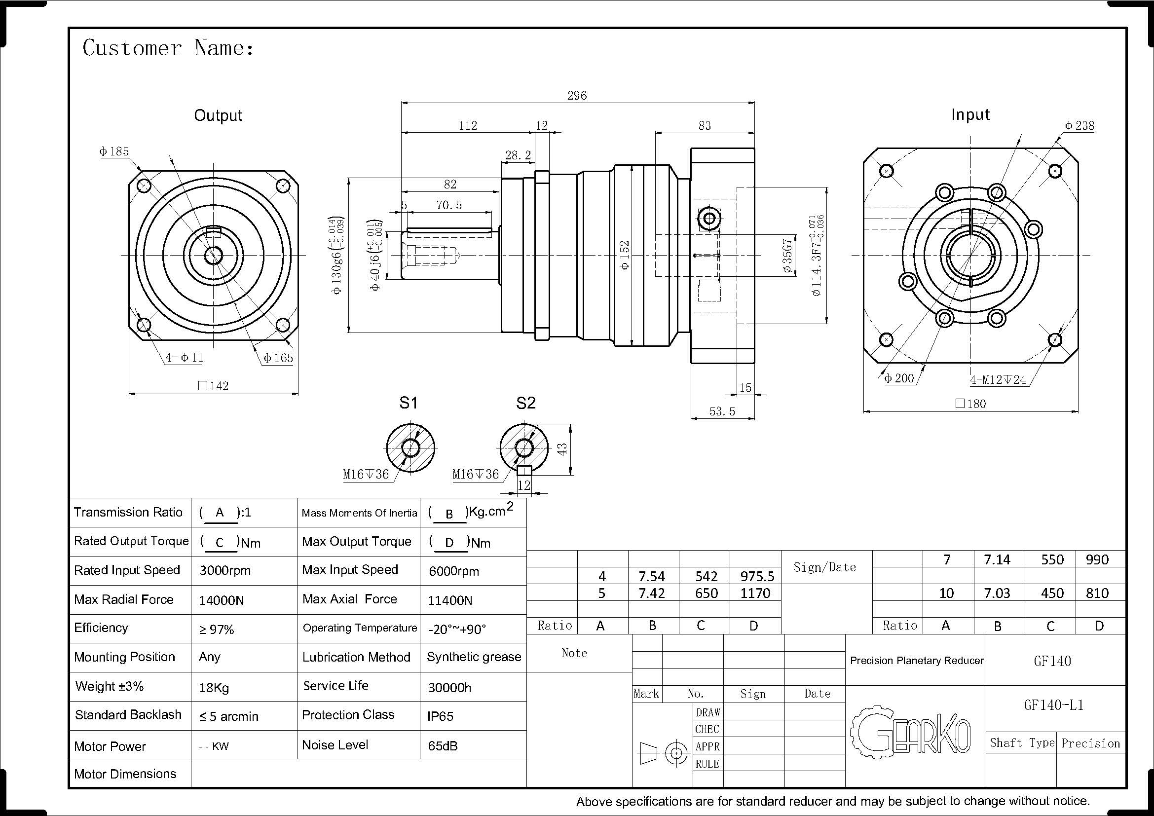 Any parameters in this sample are subject to change without prior notice. Please confirm with GearKo Taiwan before ordering.