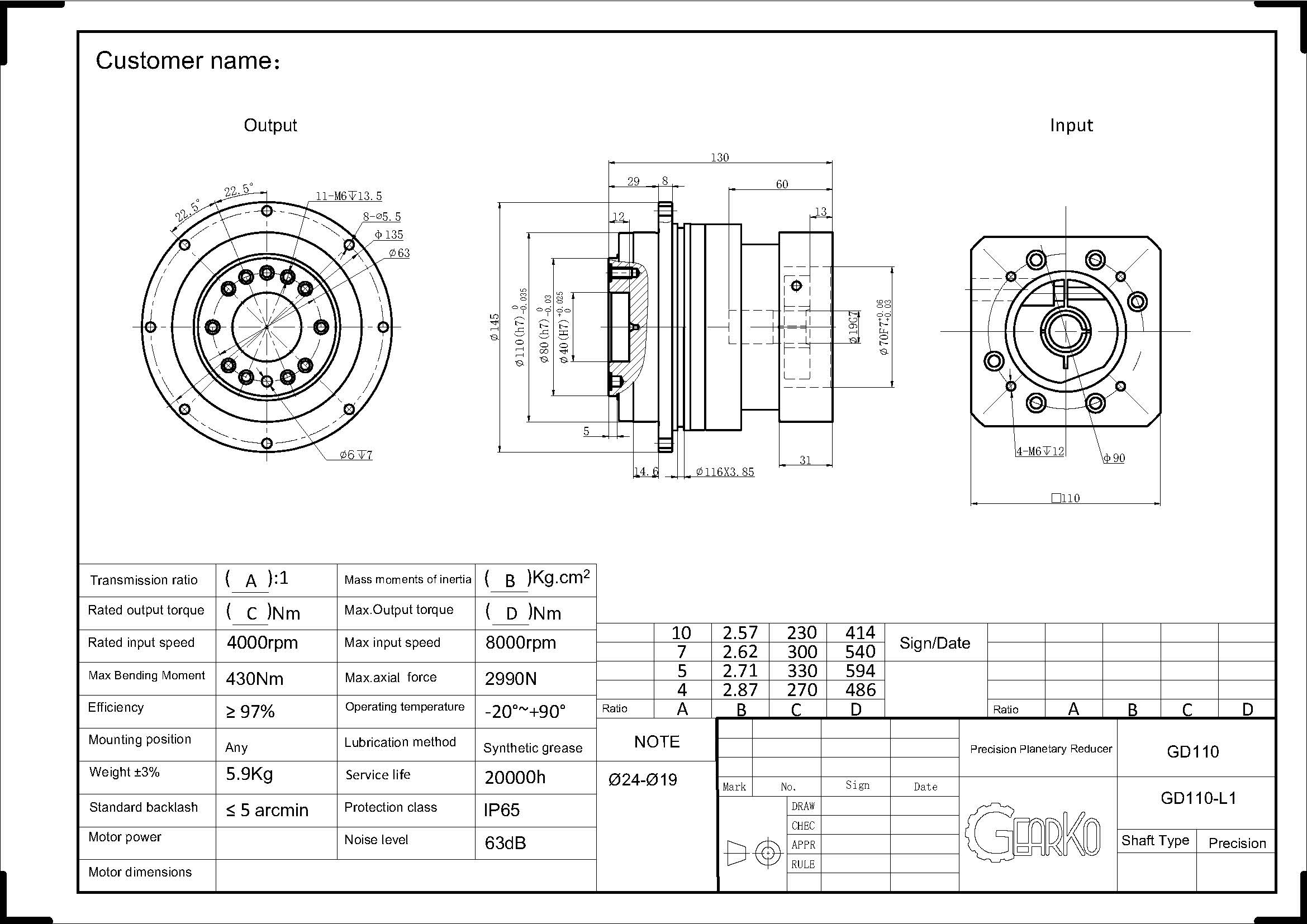 Any parameters in this sample are subject to change without prior notice. Please confirm with GearKo Taiwan before ordering.
