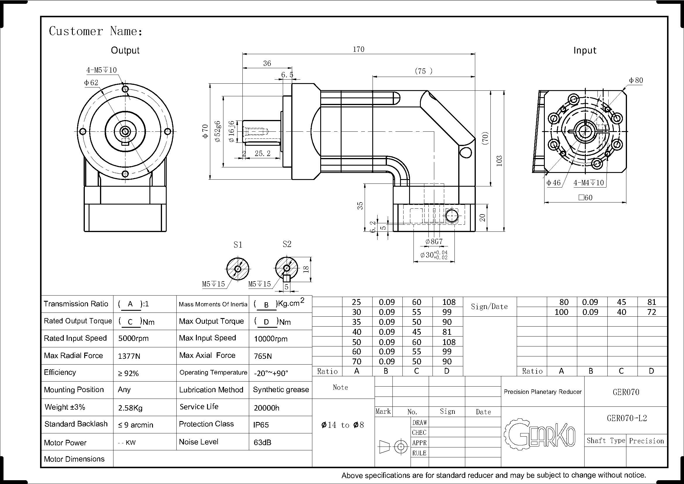 Any parameters in this sample are subject to change without prior notice. Please confirm with GearKo Taiwan before ordering.