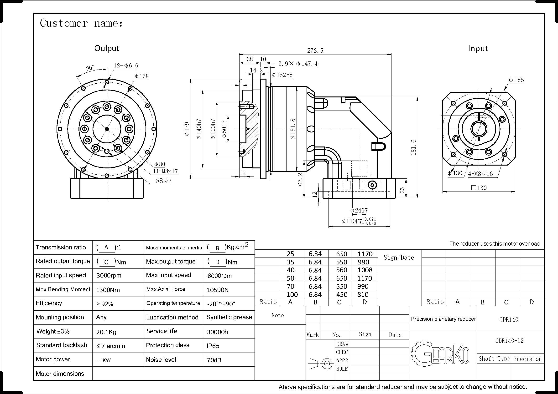 Any parameters in this sample are subject to change without prior notice. Please confirm with GearKo Taiwan before ordering.