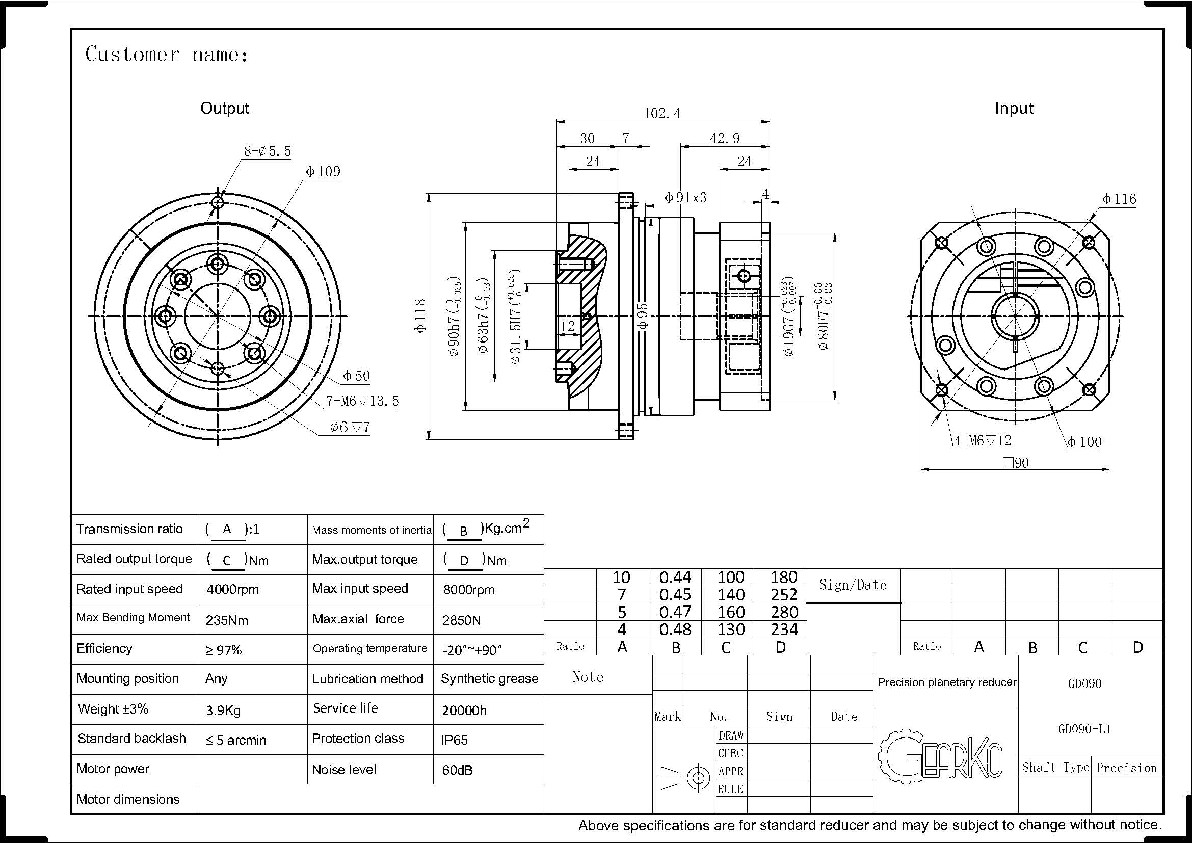 Any parameters in this sample are subject to change without prior notice. Please confirm with GearKo Taiwan before ordering.