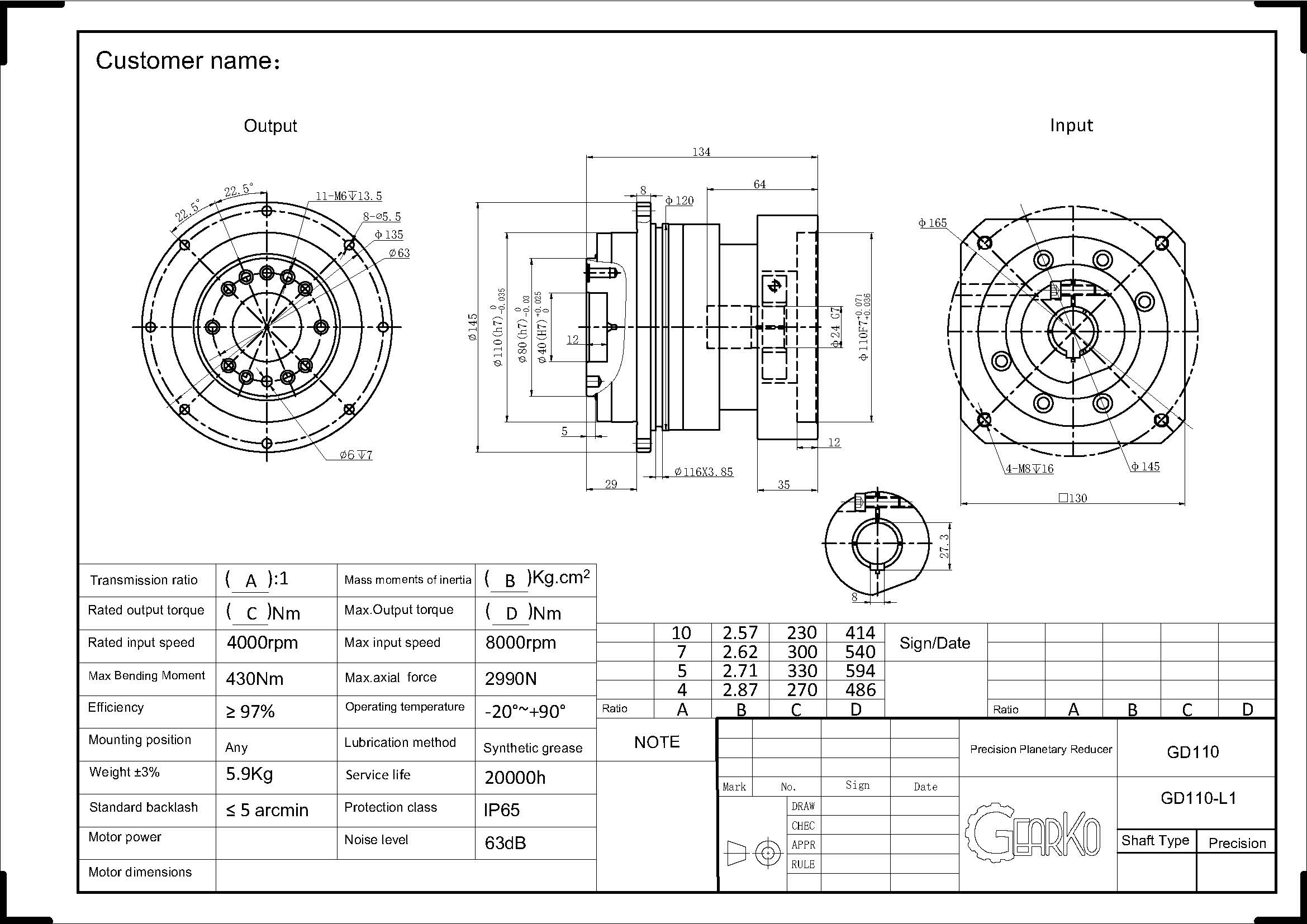 Any parameters in this sample are subject to change without prior notice. Please confirm with GearKo Taiwan before ordering.